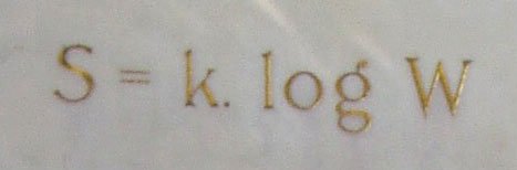 Boltzmann’s entropy formula carved on his gravestone.